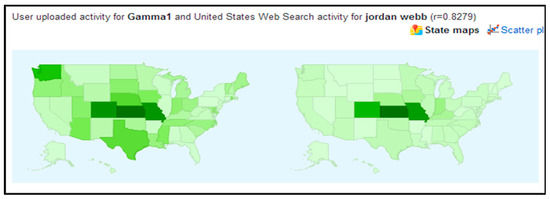 As noted earlier, the focus of our study is what might be thought of as a case study of a particular kind of big data—big search data. This data measures the temporal and spatial frequency with which internet search engine users search for particular words and phrases. The main ongoing portal to access Google search frequency data is the Google Trends tool https://trends.google.com/trends/ (accessed on 24 February 2023), which allows users to see and download data on the frequency with which search terms have been used (in particular geographic areas and over particular time frames). Google Correlate [27] is a now-discontinued tool that we used to collect the data reported in this study (shortly before it was discontinued). Google Correlate allowed users to upload a cross-sectional or time series variable. The tool then suggested search terms that had search frequency data with high correlations with the uploaded variable. To collect the data used in this article, as described below, we used Google Correlate to identify search results that were highly correlated with the random-number-generated variables.