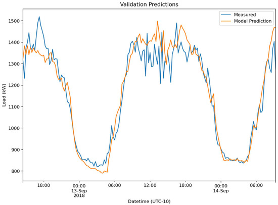 Based on these results, a minimum threshold of 0.9 is suggested for data with good autocorrelation. For those datasets, the NP normalized by peak load is 4.1%, 4.6%, and 3.1% for the Hotel 1, Manufacturing Plant, and Distribution Networks, respectively. An expected and positive result is that the respective skill score for each of those three datasets was 18%, 24%, and 32%, so the highest skill score is associated with the lowest NP . This is to say that the most predictable dataset according to NP was also the dataset where the LSTM-EMD model was able to make the most improvement over NP. A possible explanation is that spatial load aggregation benefits the Distribution network the most, in terms of prediction capability. The Manufacturing Plant is physically large enough to have good load aggregation, but as the building is a manufacturing production line many of the individual machines will be temporally aligned.