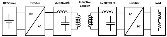 Inductive wireless charging utilizes Lenz’s and Faraday’s laws of magnetic induction to transmit power from one medium to another. Inductive charging can work efficiently for low low-power running applications [126]. Therefore, near-field magnetic field-coupled WPT (IPT) technology is the most widely employed and studied wireless power transfer system. The block diagram of IPT is depicted in the following Figure 12. This WPT is considered to be a loosely coupled transformer because its transmitting and receiving coils remain separated by a significant distance [127]. In magnetic coupled WPT, the primary transmitting coils generate the magnetic field. The receiving coils receive the generated field, then the power is transferred to the load through AC–DC rectification [16].