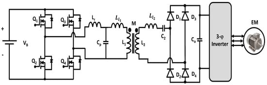 Despite many desirable features, the converter has some drawbacks, such as the rectifier bridge facing high voltage stress and high-circulating current in the freewheeling interval [6]. Moreover, to improve the efficiency, volume, cost-effectiveness, and reliability of this onboard charging topology, researchers have been investigating several possibilities, such as phase-shifted dual-active-bridge (PSDAB) [59,60] and phase-shifted triple-active-bridge (PSTAB) [61].