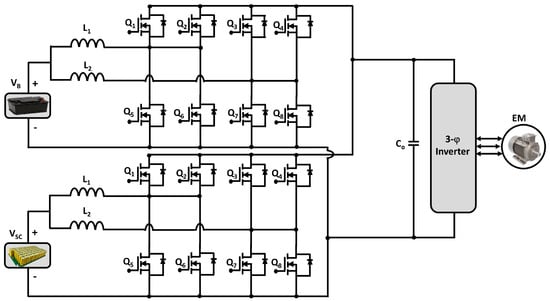 - Ye, H.; Magne, P.; Bilgin, B.; Wirasingha, S.; Emadi, A. A comprehensive evaluation of bidirectional boost converter to-pologies for electrified vehicle applications. In Proceedings of the IECON 2014-40th Annual Conference of the IEEE Industrial Electronics Society, Dallas, TX, USA, 29 October–1 November 2014; pp. 2914–2920. [Google Scholar]