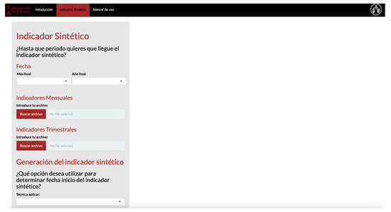 The application https://apps.uv.es/app_indicador_sintetico/ (accessed on 17 April 2023) also has a third tab that contains the user manual, providing a step-by-step explanation in Spanish of how to create a synthetic indicator of regional economic growth.