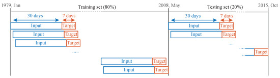 Moving window schematic to construct training and testing sets. The testing set period spans between 21 May 2008 and 29 October 2015.