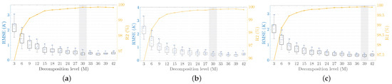 It is common practice to use signal decomposition techniques for time series analysis in order to remove noise and to capture inherent time-frequency information. Among the most commonly used time series decomposition methods are WT, empirical mode decomposition (EMD) [19], ensemble empirical mode decomposition (EEMD) [20], and VMD [21]. All these techniques have been successfully employed for diverse time series forecasting problems from financial market analysis [22,23,24], to earthquake and weather predictions [25,26], to machine health monitoring [27,28].