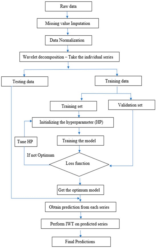 Price forecasting has become a crucial tool to navigate the changes in market dynamics. It empowers stakeholders, including farmers, traders, and businesses, to make well-informed decisions in response to these price fluctuations []. With accurate forecasting, one can anticipate future market trends and align production, procurement, and trading strategies accordingly. The evolution of statistical and machine learning techniques has significantly enhanced the precision of forecasting prices in various fields such as finance, agriculture, economics, and business []. The learning process and the effectiveness of these techniques are compromised by redundant, noisy, or unreliable information. Assuming the data adhere to a systematic pattern with random noise, a successful denoising algorithm facilitates a profound grasp of the data generation process, resulting in more accurate forecasts []. The wavelet transform method stands out as a prospective signal processing technique, offering simultaneous analysis in both the time domain and frequency domain []. This transformation enhances the forecasting model’s capacity by capturing valuable information across multiple resolution levels.