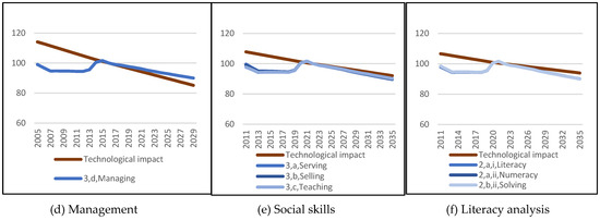 Adams’s study in 2018 [31] showed that technological advancements will deeply influence job markets. These new technologies will significantly change the nature and types of occupations available, even if they will not necessarily eliminate them. The manner in which people seek employment and the methods of supervision during work will also be affected. In addition, he found that these changes will impact not only the labor market but also society and democracy. Therefore, a comprehensive policy approach is needed to prepare future generations and assist displaced workers in finding new and meaningful employment opportunities [31,32].