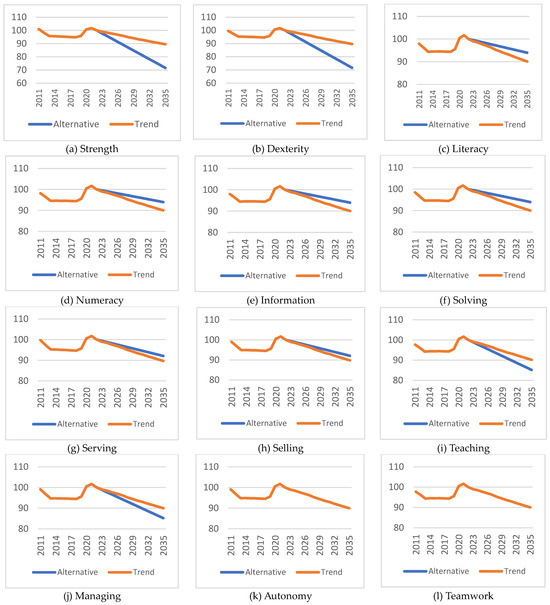 The forecasting process adopted is based on time series projection, which was chosen since it exploits past data to predict future job demand in the long term and helps in understanding general trends. In addition, it is less expensive than other methods even if it requires high-quality and consistent data. The trend adjustments were perfectly useful in our case because they presented approximate long-term phenomena and responded to the slow automation process. Therefore, they allowed us to extrapolate historical trends into the future to determine not only the quantity of work that would be required but also the type of jobs in demand.