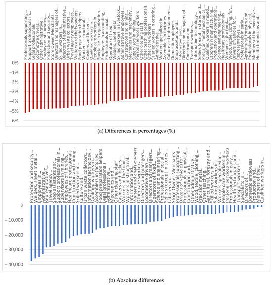 | Qualified workers in forestry, fishing, and hunting activities | 33,025 | 62,558 | 29,532 | 89% | 59,613 | 26,588 | 81% | 5% | −2945 |