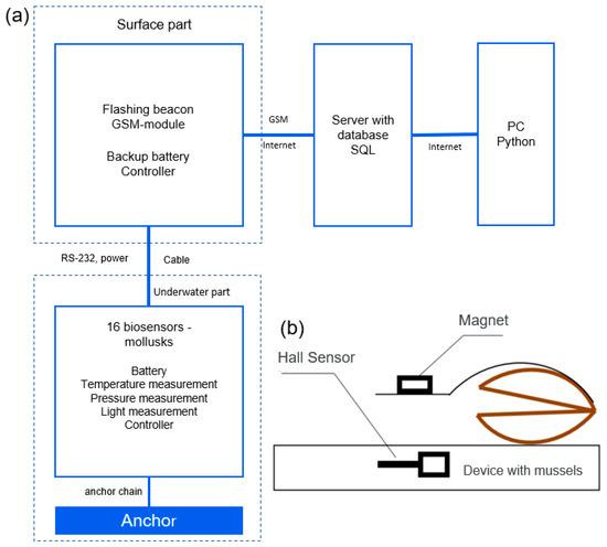 - Grekov, A.N.; Kuzmin, K.A.; Mishurov, V.Z. Automated early warning system for water environment based on behavioral reactions of bivalves. In Proceedings of the 2019 International Russian Automation Conference (RusAutoCon), Sochi, Russia, 8–14 September 2019; IEEE: Piscataway, NJ, USA, 2019; pp. 1–5. [Google Scholar]