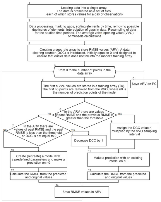 Data analysis and implementation of the developed algorithm were carried out in the Python programming language (V 3.9.12) using the machine learning library scikit-learn (V 1.2.2) [42], statistical analysis library statsmodels (V 0.14.0) [43], and library for forecasting and anomaly detection in time series Darts (V 0.27.1) [44].
