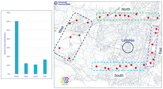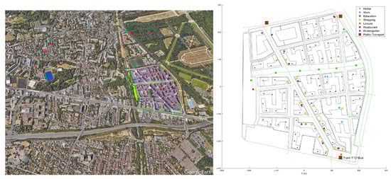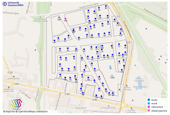 The projection scenario refers to the hypothetical future situation, in which the catchment area including the LaVallée district and its agents is modeled. In this future situation, the numerical data available on LaVallée are the total number of inhabitants, employees, and students, respectively, in workplaces and schools. However, to be able to generate a set of activity plans, it is necessary to have at least the places of activity of the residents, in addition to the origin of employees and students.