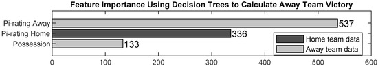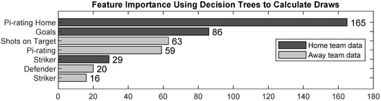 The most interesting result is that the features proposed in this work—namely, the relative defending, playmaking, midfield power, and goal expectancy of the home team—are more important to the system’s final decision than the pi-ratings from both teams. This proves that these four proposed features are a more reliable data source for predicting a match result than existing state-of-the-art parameters.