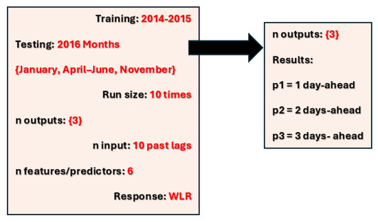 The second stage used the observed WLs of the target station along with the forecasted WLs produced in the first stage and the forecasted rainfall at Ratnapura for the period of 1 January 2016 to 31 December 2019. These rainfall forecasts were obtained from our previous study, as referenced in [38].