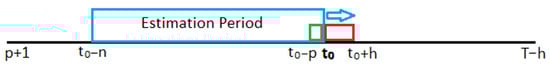 where is defined as in Equation (8a,b). The solver (9) involves iterations at each t, but Equation (12) may use the initial values . In this framework, the window-width n tunes the degree of adaptation and may be selected to minimize the prediction errors of (10), including its MAPE statistics, as can be seen in Equation (14).