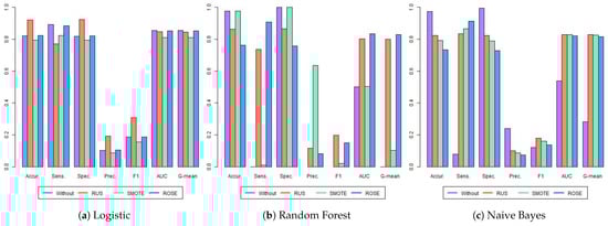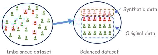 In this section, we briefly introduce the methods employed in this research: the Random Undersampling (RUS), synthetic minority oversampling technique (SMOTE) [,], and random oversampling examples (ROSE) []. For a more comprehensive understanding of these methods, see [,].