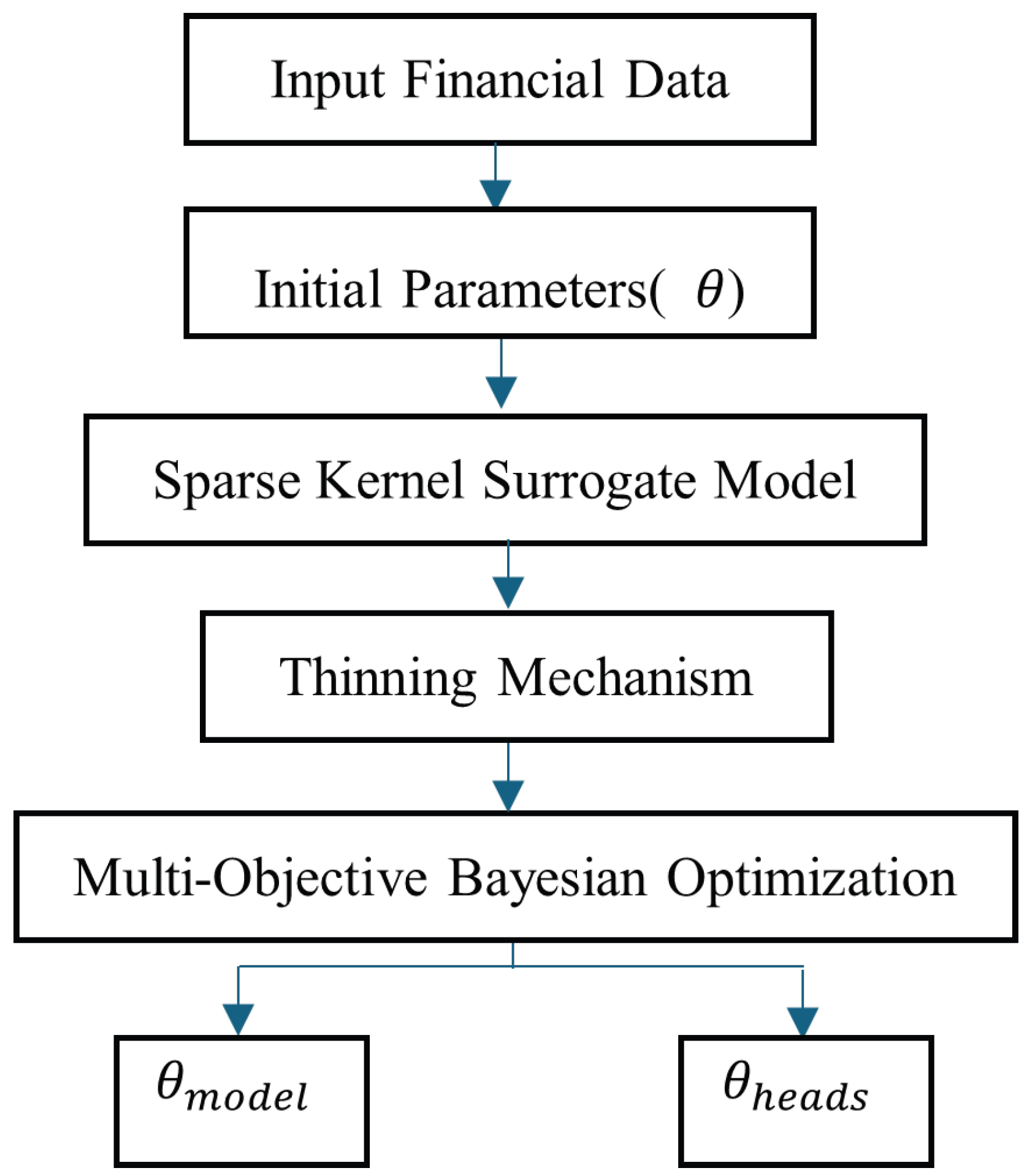 63]. This integration produces a smaller demographic parity gap (0.046) while maintaining high discriminative performance (AUC = 0.855). The performance gains can be attributed to the Sparse Kernel Optimization (SKO) surrogate, which stabilizes parameter search in high-dimensional spaces, and the dual-head output, which separates risk prediction from continuous financial health scoring [