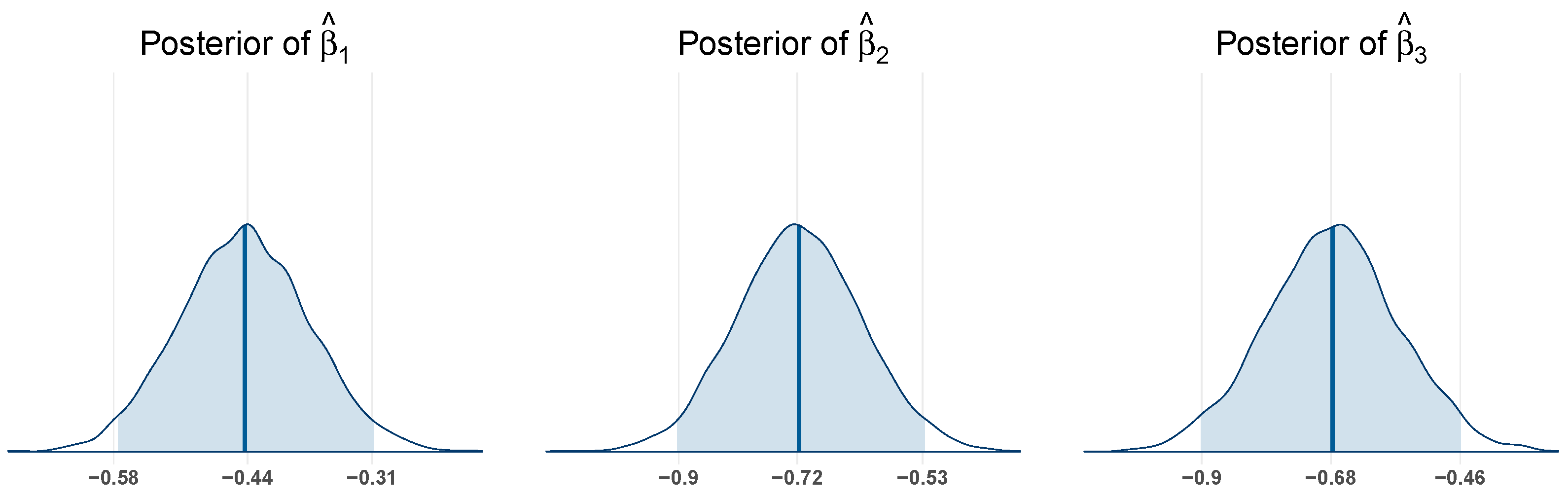 28]. Correspondingly, the value of MCSE remains small for all coefficients, suggesting that the Monte Carlo uncertainty is negligible relative to posterior variability [