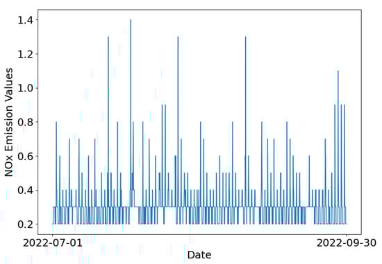Time series plot of NOx emission values in the test set, spanning from 1 July 2022, to 30 September 2022.