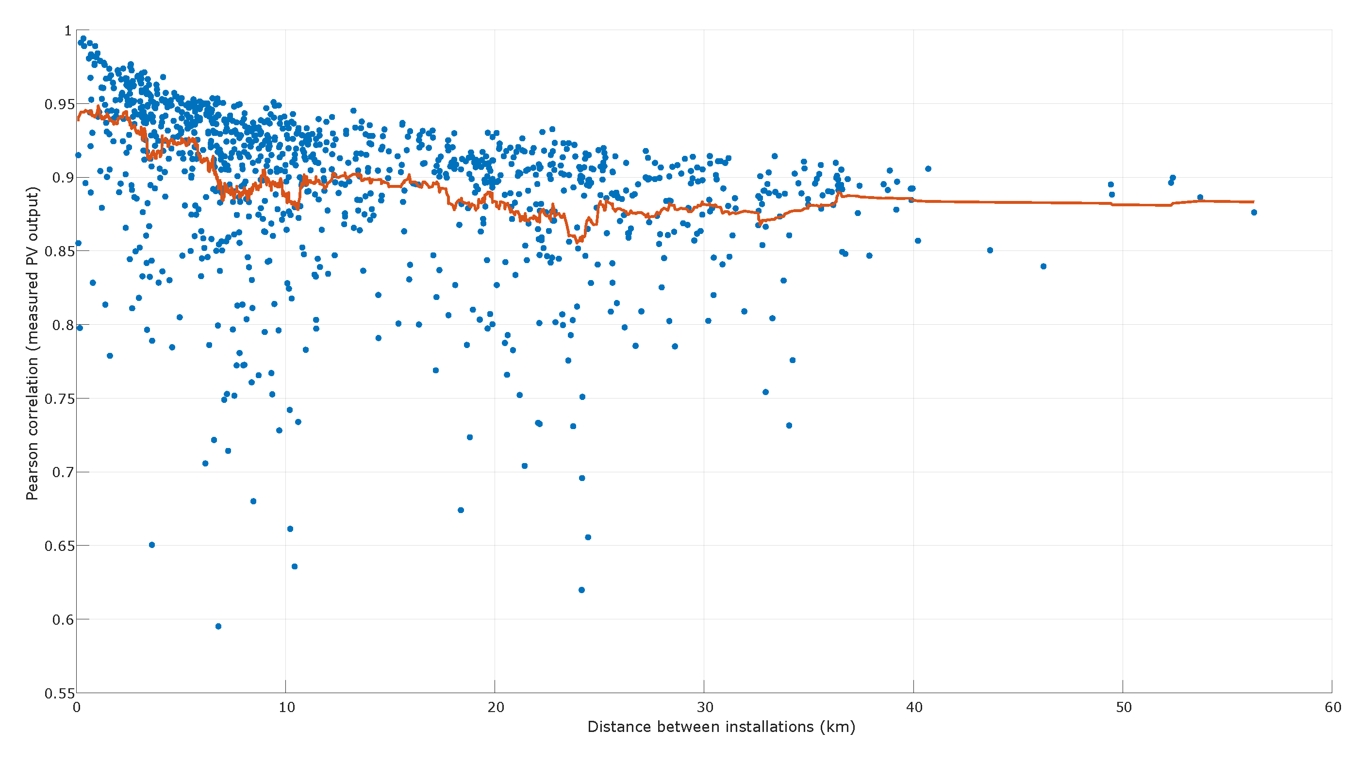 Several limitations should be considered when interpreting these results. First, the analysis is restricted to a single geographical region (Utrecht), the relatively homogeneous climate and dense urban layout of which may not reflect conditions in other areas. Spatial correlation patterns, cloud dynamics, and irradiance variability can differ substantially across climates. In addition, the study focuses exclusively on residential-scale PV systems; utility-scale installations may exhibit different spatial and temporal behavior, and the extent to which our results generalize to those settings remains uncertain.