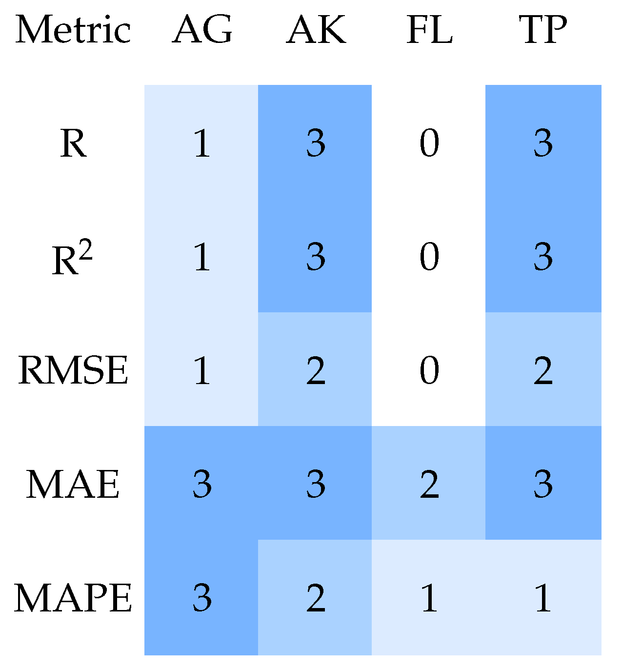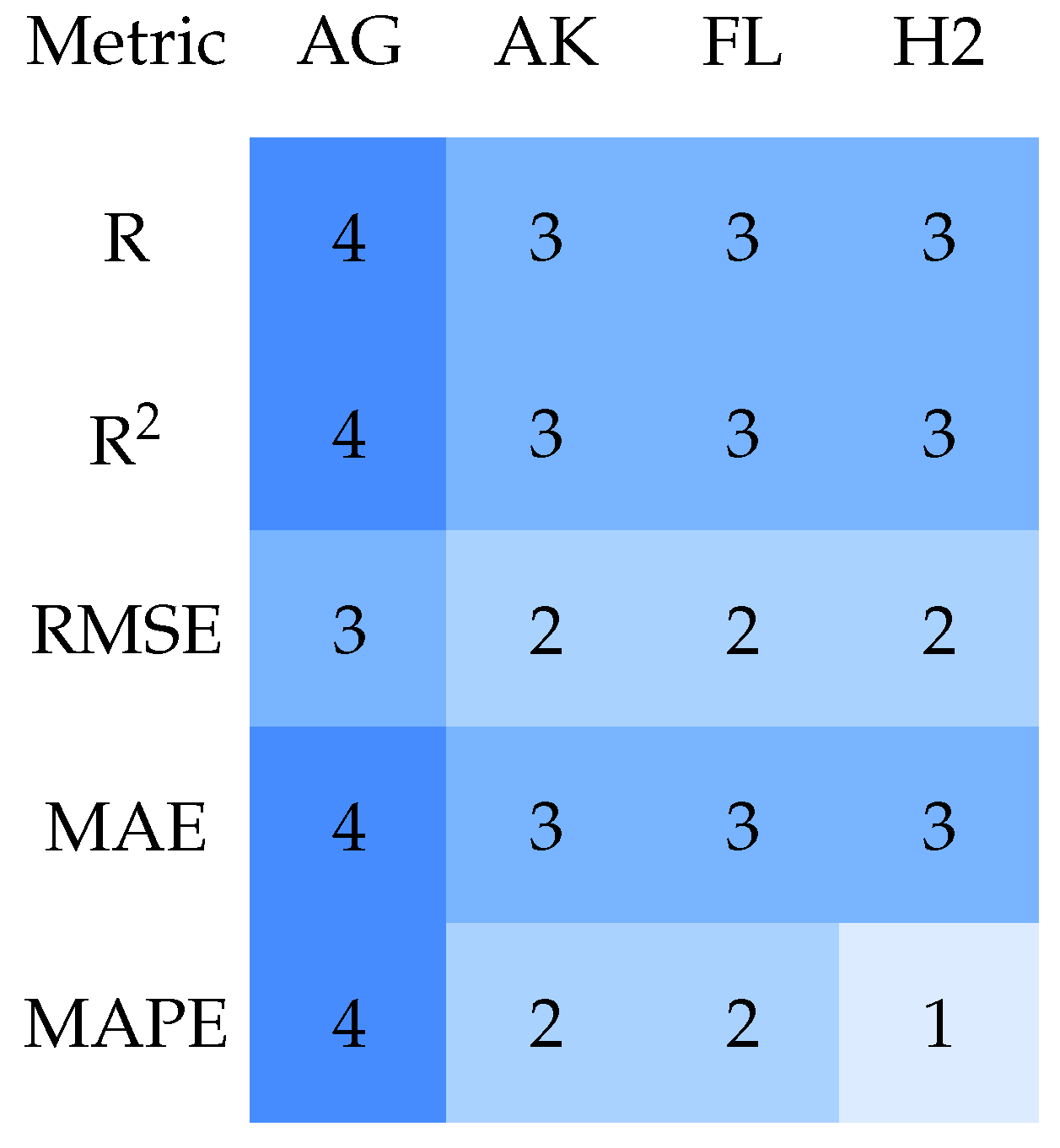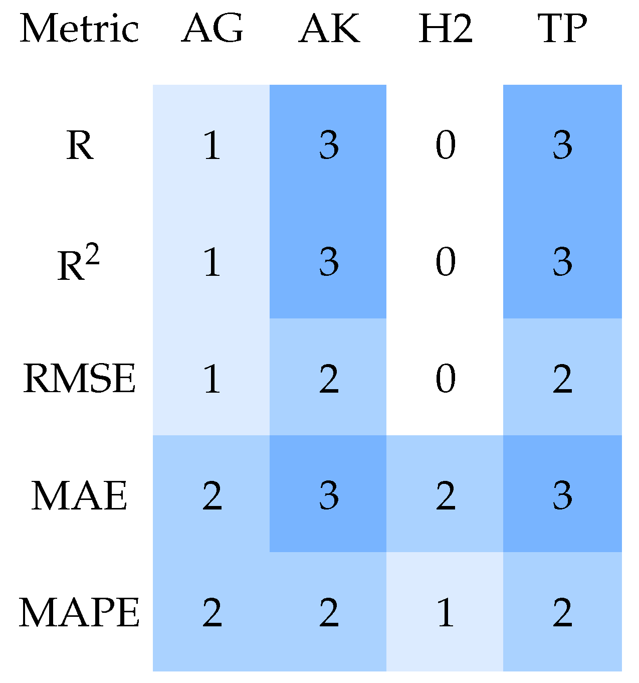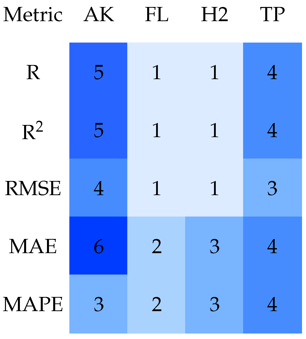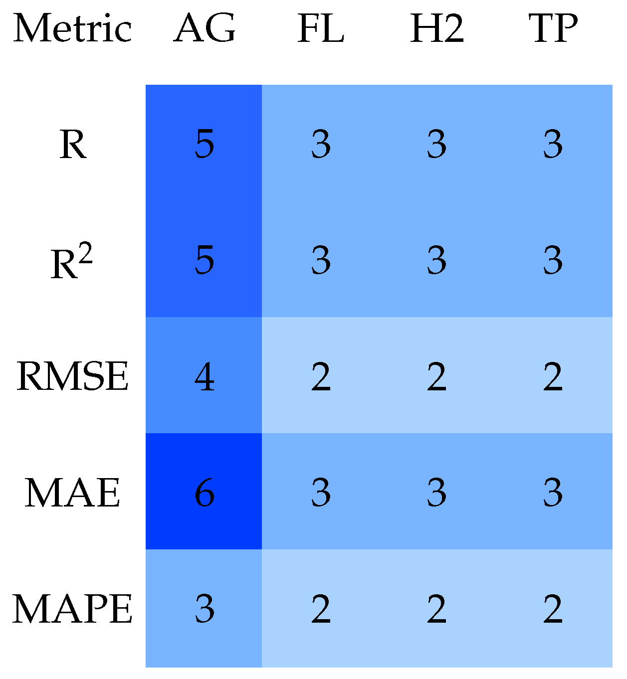 | Model/Framework | R | R2 | RMSE | MAE | MAPE | Score |