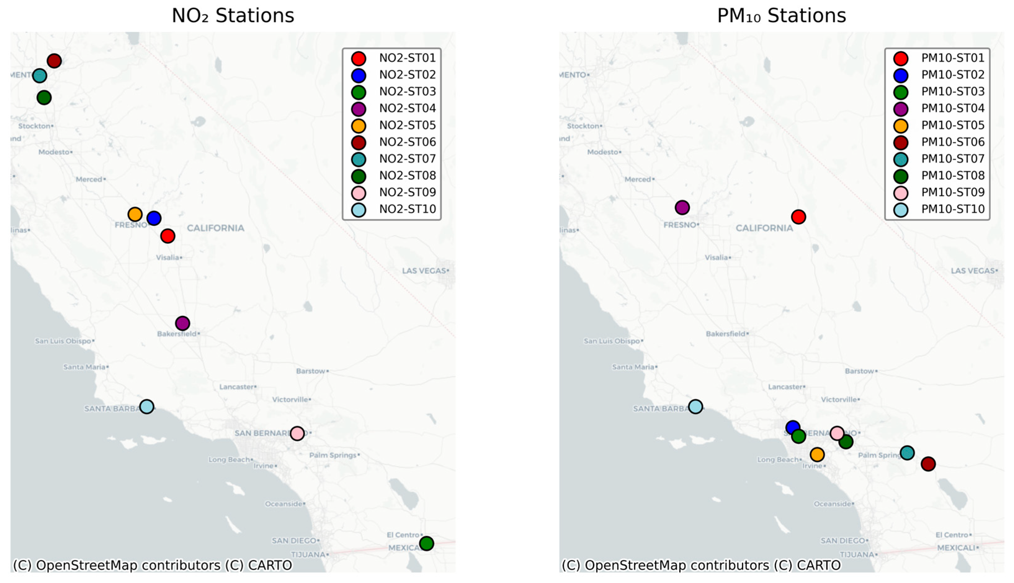 7]. Their distinct spatial heterogeneity and source profiles make them natural candidates for pollutant-specific DL architectures and loss functions. Second, both pollutants are of high regulatory relevance for state and federal air-quality standards and play a central role in exposure and health-impact assessments [
