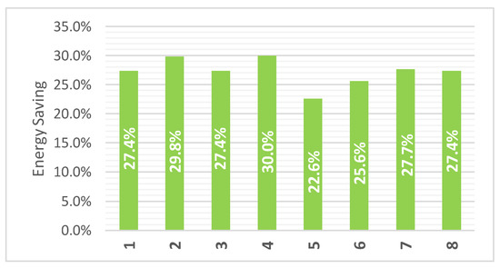 While the case of only natural ventilation reduced the energy consumption by 63.4% (Figure 24), it greatly affected the interior thermal comfort as the base case operative temperature ranged between 19 °C and 28 °C, while the natural ventilation case operative temperature range was 18–35 °C (Figure 25). Therefore, this case was not acceptable.