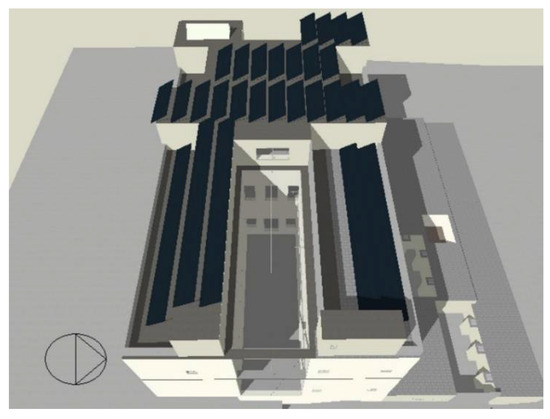 PV panels were added on the roof with a total area of 445 m2 (Figure 26) and 20% efficiency (The proposed 20% efficiency is considered higher than average, because the research aims to determine the maximum benefits achievable). The PV generator component used in the simulation is the “simple model” of PV panels in DesignBuilder, that may be useful to early phase design analysis.
