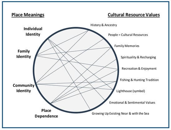 Where cultural resources exist, meanings and connections exist within the associated communities. Overlooking place meanings that are connected to cultural resources in planning and management can have detrimental effects on communities, including the loss of identity [,]. It is quite a monumental task to attempt to distill a wide range of cultural, heritage, and place values into a format that is capable of informing management and policy, because any identities that are related to or attachments to place occur over time within a web of complex psychological and social factors []. Furthermore, if ecosystems and landscapes are caches for social meanings, it is essential to understand the relationships that stakeholders have with a resource and how deeply their identity is tied to the place in order to predict and address their responses to changing environmental conditions and management decisions [,].