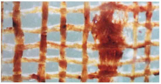 16]. The third author of this paper, however, performed a microscopic analysis with cross-polarized light to highlight any birefringence useful for characterizing the fibers constituting the threads of the fabric. He noted iridescence not typical of the byssus, but rather of linen [