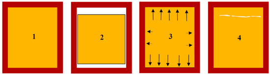 Figure 6b, indicated by the red arrows, is compatible with a retouching performed on an ancient icon. Probably, the profile of the upper lip was that indicated by the white arrows in