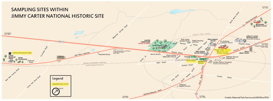 Map and sampling locations at Jimmy Carter National Historic Site [7].