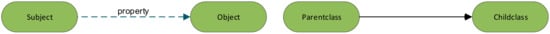 In Figure 3, dashed arrows indicate a relationship (object property). Continuous arrows depict a baseclass-to-sub-class relationship.