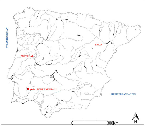 Location of Torre Velha 12 site in the Iberian Peninsula map.
