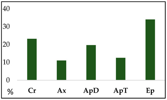 Percentage of anatomical parts in pits (Cr—cranial elements; Ax—axial elements; ApD—front limb elements; ApT—hind limb elements; Ep—other limb elements).