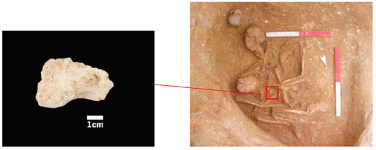 Funerary context of hypogeum H10, with cattle’s carpal.