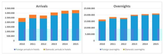 Regarding the average length of stay, based on the data of arrivals and overstays (Table 2), it is estimated that the average length of stay of foreign visitors in Crete during 2010–2015 was 7.09 days. The average length of stay for domestic visitors was 3.04 days.