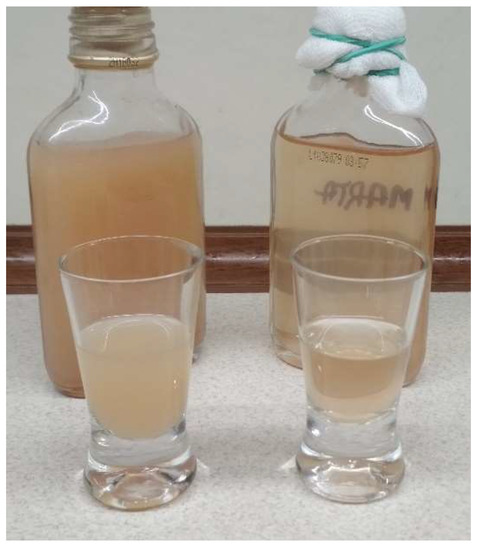 Produced wine was turbid but represented proper organoleptic characteristics. The taste was very intense, sweet, and spicy, so it was necessary to dilute the wine before consumption. Gas chromatography yielded the following results regarding alcohol content in analyzed samples:11.8% alcohol by volume in Sample 2 (stored at 6 °C) and 13.1% alcohol by volume in Sample 1 (stored at room temperature of 20–22 °C). The alcohol content is similar to that of wines commercially available in Poland. Such results suggest that honey added as a flavor delivered additional sugar for fermentation. Wine stored at room temperature (Sample 1) had a higher alcohol content due to storage conditions optimal for yeast activity, whereas lower storing temperature for Sample 2 turned out suboptimal for fermentation, effectively slowing down the process which resulted in lower alcohol content. Another interesting observation is that wine stored at a lower temperature was more turbid than the sample stored at room temperature.