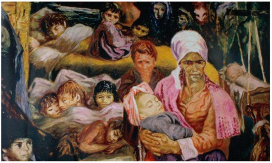 In MUSMA, the light flows on marble, bronze, iron, steel, terracotta, plaster, ceramic, papier-mâché, tuff, and wood, and it reveals by drawing the shadow. On the contrary, in many cases, two dimensions are sufficient for an image. Lucania 61, a large mural by Carlo Levi in Palazzo Lanfranchi shows the inhabitants of Basilicata in 1961. In this mural, the artist neglects depth, leaving to the viewer the task of finding it. See a detail in Figure 3.