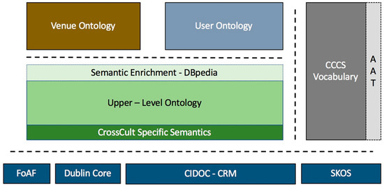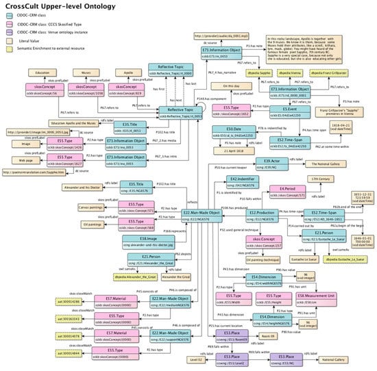 - Vlachidis, A.; Bikakis, A.; Kyriaki-Manessi, D.; Triantafyllou, I.; Antoniou, A. The CrossCult Knowledge Base: A Co-Inhabitant of Cultural Heritage Ontology and Vocabulary Classification. In New Trends in Databases and Information Systems. ADBIS 2017. Communications in Computer and Information Science; Kirikova, M., Ed.; Springer: Cham, Switzerland, 2017; pp. 353–362. [Google Scholar]
