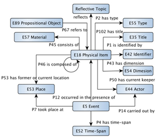 - Doerr, M. The CIDOC Conceptual Reference Module: An Ontological Approach to Semantic Interoperability of Metadata. AI Mag. 2003, 24, 75–92. [Google Scholar]