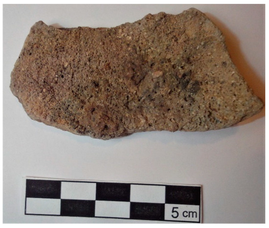 It is also worth noting a calcined ceramic fragment was found with incrusted metal residues in the inner wall, without shape, though it might belong to a ceramic wall (Figure 26).