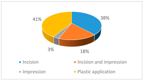 Percentage of decorative techniques studied.