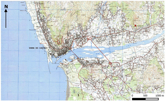 According to Queiroga [2], Roman ceramic was found in this sector, namely a large number of amphorae, which, although not studied in this work, shows a high consumption of wine and olive oil by the indigenous communities and the significant trade with the southern world, along the lower course of Lima, at the end of the first millennium BC and the beginning of the first millennium AD. Such trade was facilitated by the geographical positioning of this settlement, substantially prominent in the territory where it is found (Figure 29), which allowed the communities residing there to have a great visual control over the valley and mouth of the river. It is, therefore, to be assumed that the Romans of two millenniums ago had traveled up the river and strongly influenced the indigenous populations from this “agricultural hillfort” and took large amounts of tin and other ores.