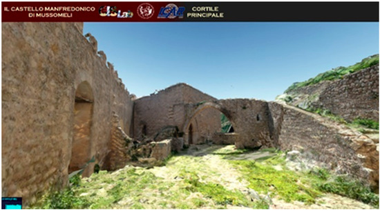 The main courtyard of the Castle of Mussomeli on the 3D web navigation platform.