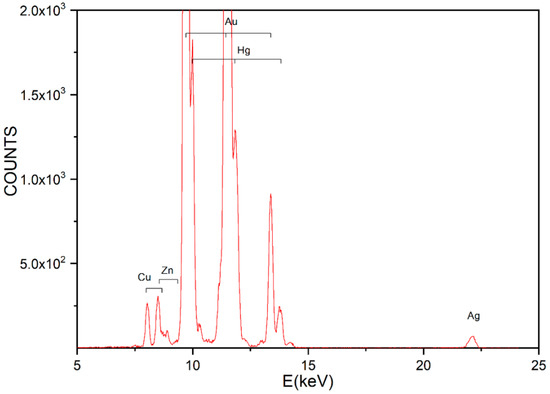 Furthermore, we checked the composition by PIXE measurements. A typical spectrum is displayed in Figure 4. The results obtained in all the measurements are listed in Table 2 (weight percent and absolute uncertainties).