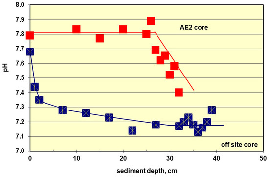 pH of AE2 core profiles and off-site values.