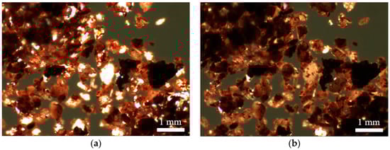 (a) Venetian red ochre before heating; and (b) Venetian red ochre after heat treatment at a maximum temperature of 580 °C.