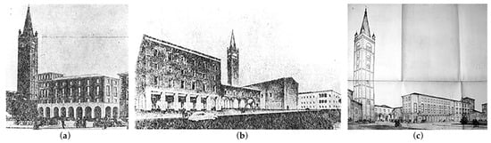 As a condensation place of institutional and representative buildings, Piazza Saffi hosts architectures that have undergone not a few revisions during the Fascist period. Some buildings have been demolished in order to leave space for architectures with greater austerity, while other buildings have undergone interventions in order to confer a renewed appearance to the square. Although revisited by virtue of precise functional instances, the buildings facing Piazza Saffi had to answer to a specific objective: They had to emphasize the power of the regime through a recall of the prestigious past of Forlì that was the provincial capital of the land which gave birth to Benito Mussolini. From this perspective, the interventions carried out in the square had to strengthen “the reference to the old ‘heroic’ times of the city” [11] (p. 59) through the enhancement of the history of Forlì between the 15th century—“the age of Melozzo” (Forlì, 1438–1494)—and the first decades of the 16th century—“the age of Palmezzano” (Forlì, 1459?–1539) [12] (p. 36). In practice, this orientation translated into a strong propensity towards past and tradition which, in the interventions on existing buildings, took the shape of a “misleading” reproduction of a glorious past.