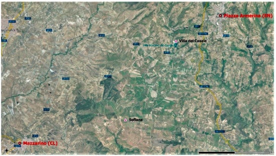 The archaeological area of Sofiana (also called Sophiana and Philosophiana [1]), falling within the homonymous district of the Mazzarinese countryside (CL), is under the administrative control of the Villa del Casale Archaeological Park in Piazza Armerina (EN; Figure 1 and Figure 2).