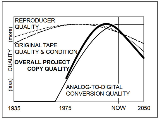 Different perspectives are involved in a preservation project: (a) the digitization of the formats which would be realized within 15–20 years not to lose information due to deterioration of tapes, even if the amount of material is enormous [13,14]; (b) the disclosure of archives (taking into account also legal implications); and (c) the preservation of the tape as objects themselves [15,16].